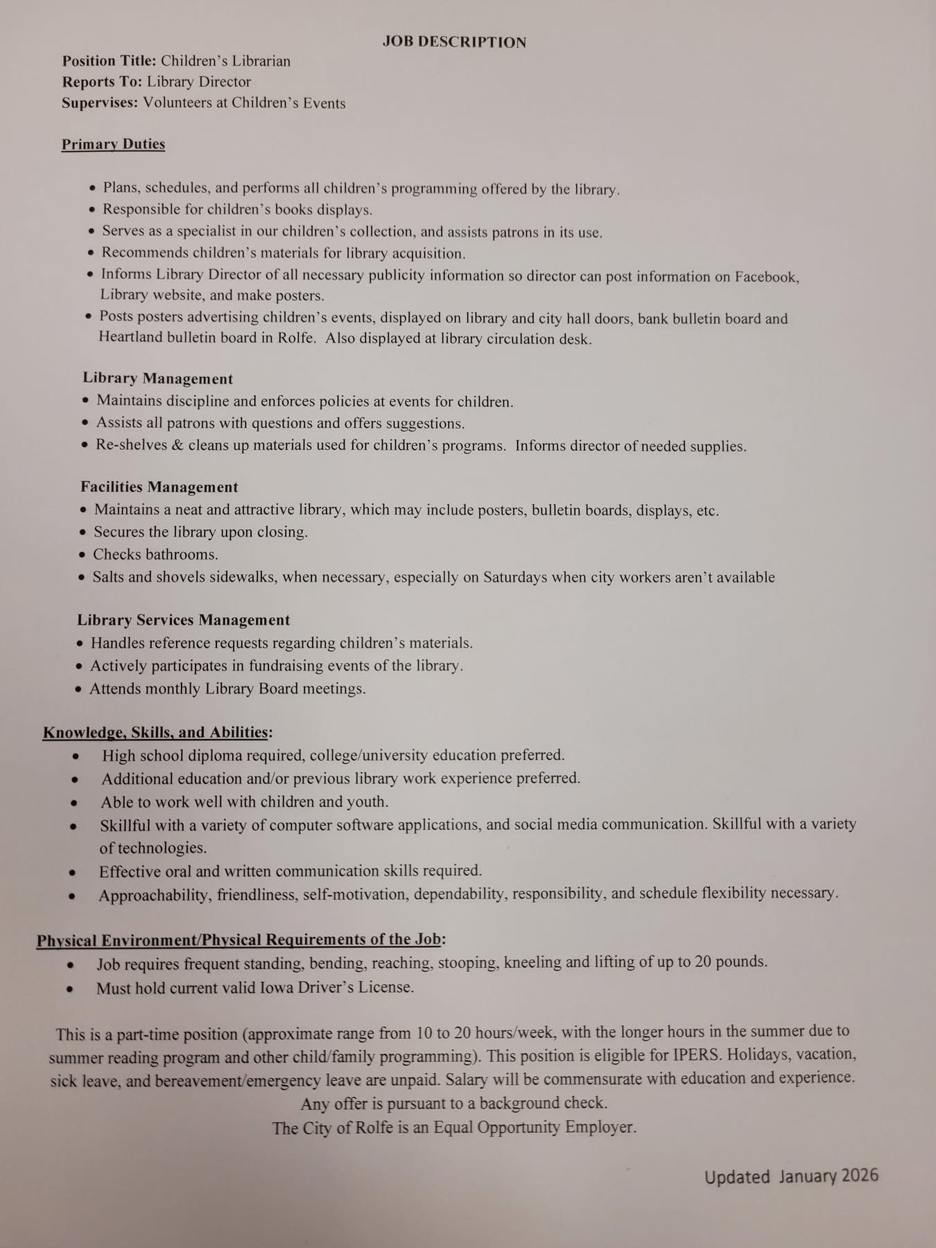 Children’s Librarian position